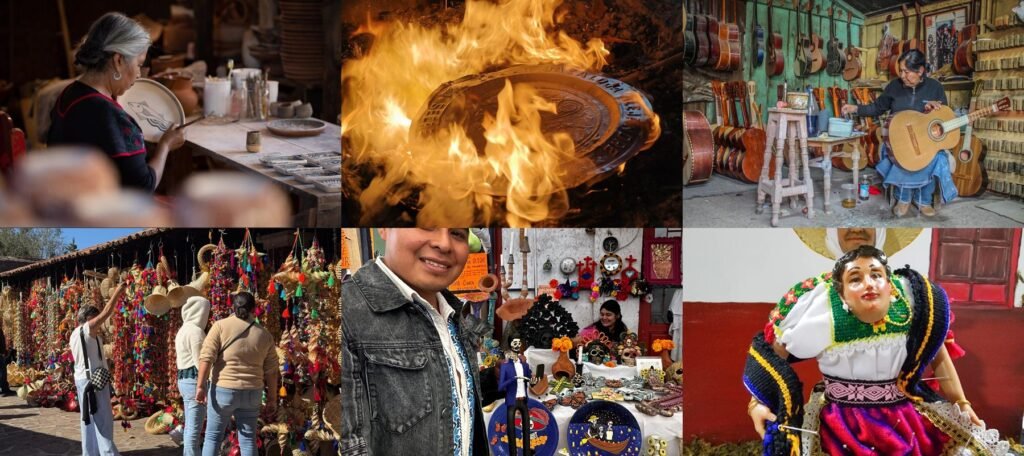 Entre los destinos más representativos se encuentra Santa Clara del Cobre, reconocido por su tradición milenaria en el cobre martillado; Pátzcuaro, referente en textiles y lacas; Ocumicho, famoso por sus coloridos diablitos; y Capula, destacado por sus emblemáticas catrinas.