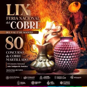 Dentro de las actividades que de manera anual se realizan y logran reunir a un amplio número de personas está la tradicional Feria Nacional del Cobre, que este año celebrará su 59 edición del 9 al 17 de agosto, y al mismo tiempo, se cumplirán 80 años desde que se realizó al primer Concurso Nacional de Cobre Martillado.