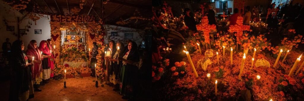 Estas dos comunidades solo reciben a sus difuntos en sus casas durante el primer año de la pérdida. La ofrenda se diferencia por días: el 1 de noviembre está dedicado a los angelitos, niños y almas de quienes murieron siendo solteros, mientras que el 2 de noviembre se reserva para los adultos que sí contrajeron matrimonio.