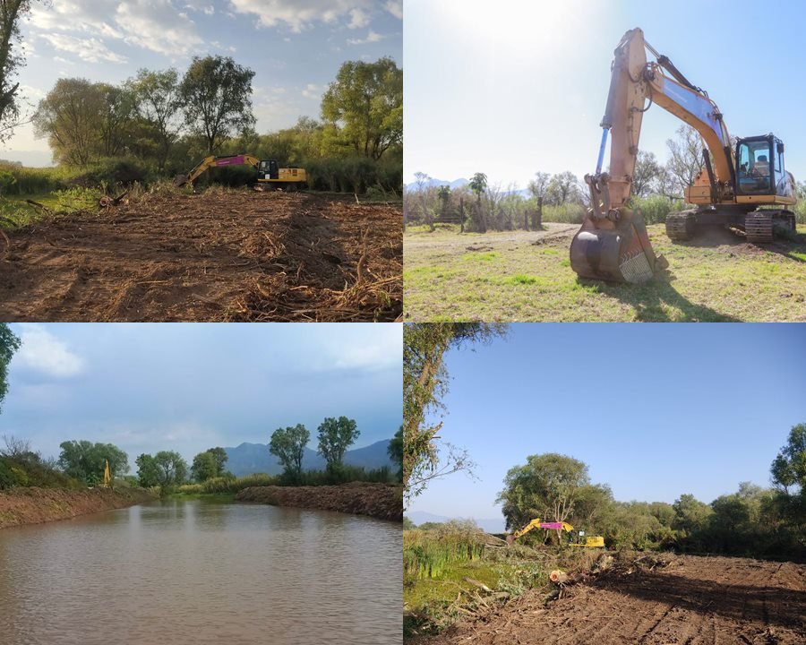 A través de la Dirección de Maquinaria y Equipo, la dependencia realiza labores de limpieza, desazolve y perfilado de los afluentes. Con el uso de excavadoras de brazo largo, el objetivo es retirar el lirio acuático y la chuspata (tule) que frenan las corrientes, para así restituir la profundidad del cuerpo de agua y recuperar las orillas del lago.