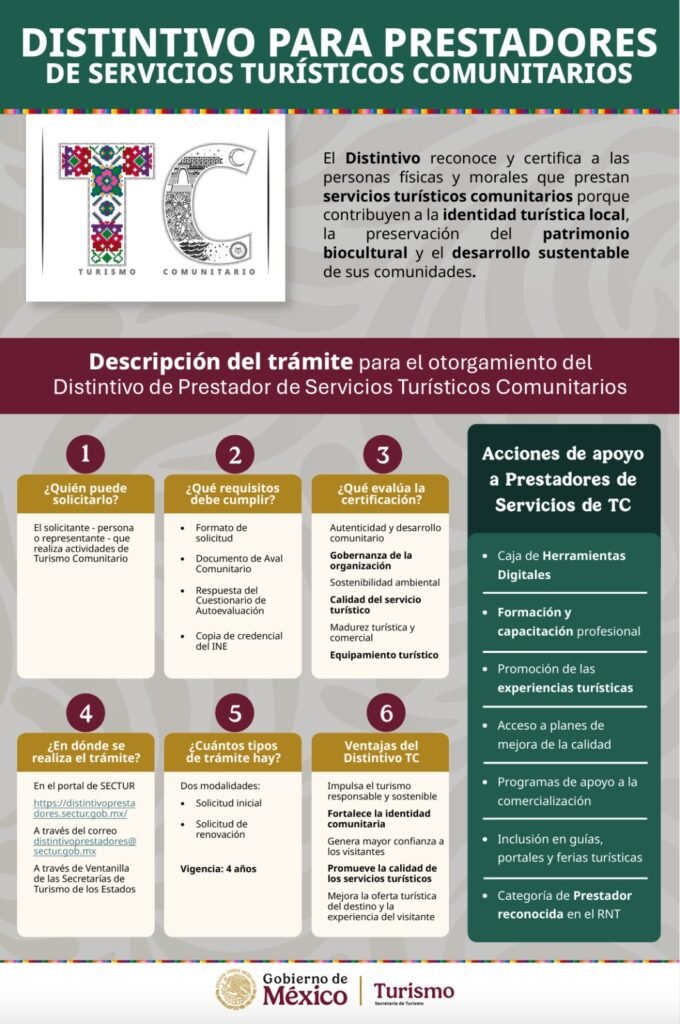Con este distintivo, se reconoce y certifica a las personas físicas y morales que prestan servicios turísticos comunitarios, señaló la dependencia estatal.