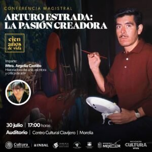 Morelia, Michoacán, 30 de julio de 2025.- Para conmemorar el centenario del natalicio de Arturo Estrada, figura clave del muralismo y referente del arte nacional, la Secretaría de Cultura de Michoacán (Secum) llevará a cabo una conferencia magistral en el Centro Cultural Clavijero, este miércoles 30 de julio a las 17:00 horas. El homenaje estará a cargo de la historiadora, escritora y crítica de arte Argelia Castillo, quien abordará la obra del maestro desde una perspectiva sensible y de análisis.