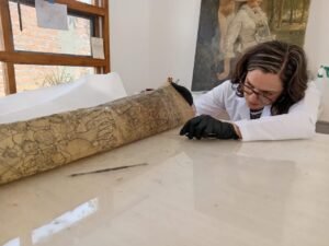 Blázquez explicó que restaurar obras sobre papel requiere técnicas especializadas debido a la fragilidad de los materiales. En el caso del boceto de O’Gorman, fue necesario un proceso minucioso de limpieza, retiro de parches antiguos y cambio de bastidor para devolverle su integridad visual y estructural.