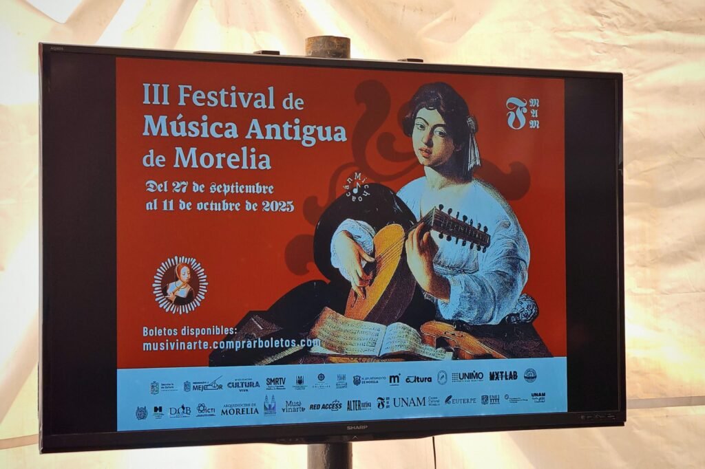 Morelia, Michoacán, 29 de agosto de 2025.- La Secretaría de Cultura de Michoacán (Secum) participará en la realización del III Festival de Música Antigua de Morelia, un evento que se realizará del 27 de septiembre al 11 de octubre. Las actividades tendrán lugar en distintos recintos como el Centro Cultural Clavijero y el Teatro Melchor Ocampo.