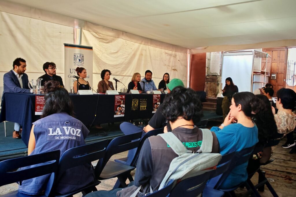 Además estuvieron presentes representantes de las demás instituciones que participan: Jorge Alberto Alba Muñoz, director de la Escuela de Producción de Audio y Sonido de la Universidad Montrer; Jorge Delgado, profesor de la Universidad Montrer; Luis Felipe Rodríguez Cruz, coordinador de la UNAM Centro Cultural Morelia, e Ireri Ortiz Silva, directora de Vinculación Musical del Ayuntamiento de Morelia.