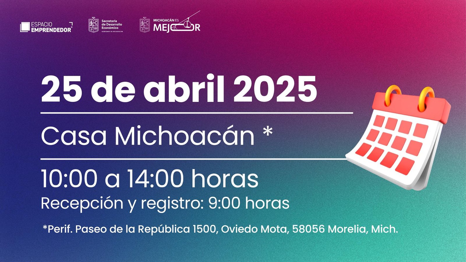 Morelia, Michoacán, a 24 de abril de 2025.- Con el objetivo de impulsar el desarrollo de nuevos negocios y fortalecer las capacidades de las y los emprendedores michoacanos, la Secretaría de Desarrollo Económico (Sedeco) invita a participar en la primera edicion de Emprende Mich, que se realizará el próximo viernes 25 de abril de forma gratuita.