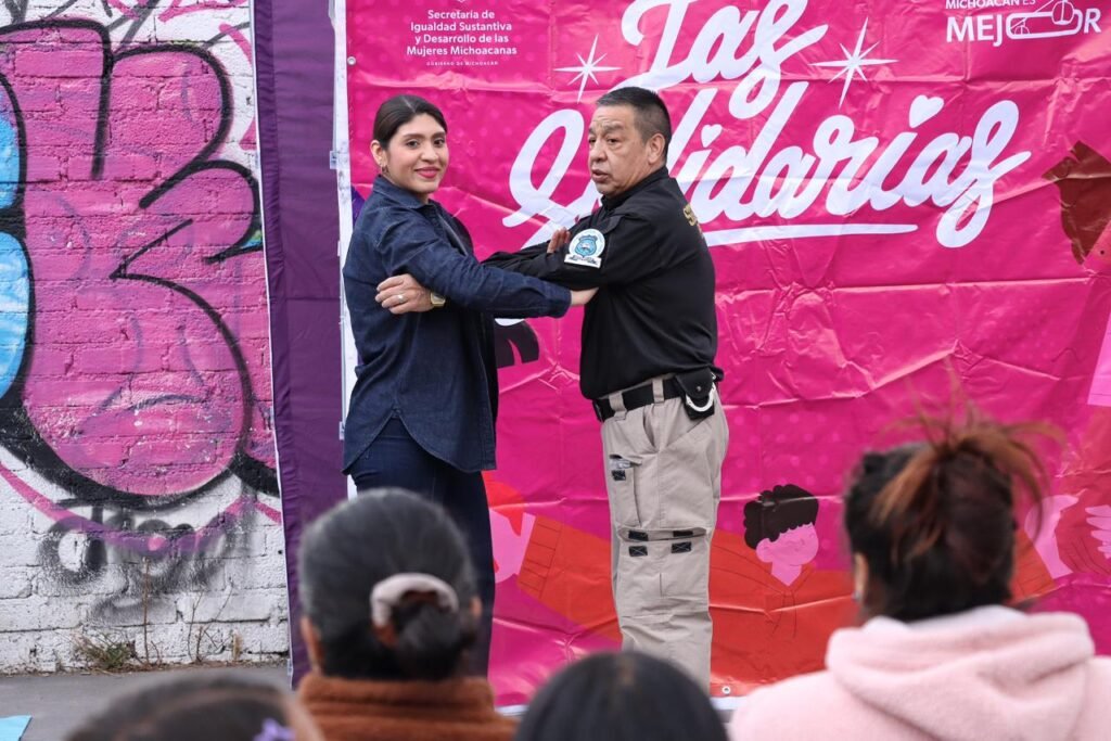 Morelia, Michoacán, 23 de enero de 2026.- Como parte del programa Escuela de Saberes de Las Solidarias, la Secretaría de Igualdad Sustantiva y Desarrollo de las Mujeres Michoacanas (Seimujer), encabezada por Alejandra Anguiano González, llevó a cabo un taller de defensa personal dirigido a mujeres de la colonia Colinas del Sur, en Morelia, con el objetivo de fortalecer su autonomía y protección.