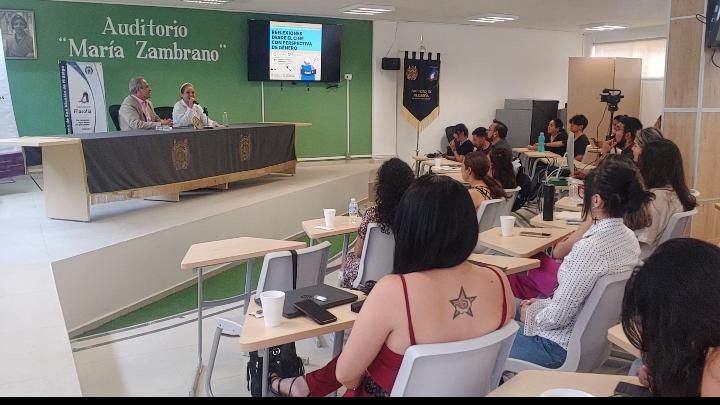El auditorio “María Zambrano” fue el punto de encuentro para esta jornada de diálogo y sensibilización, a la que asistieron estudiantes de filosofía, quienes compartieron sus inquietudes sobre el papel de la memoria, la justicia y la cultura de paz desde una mirada feminista.