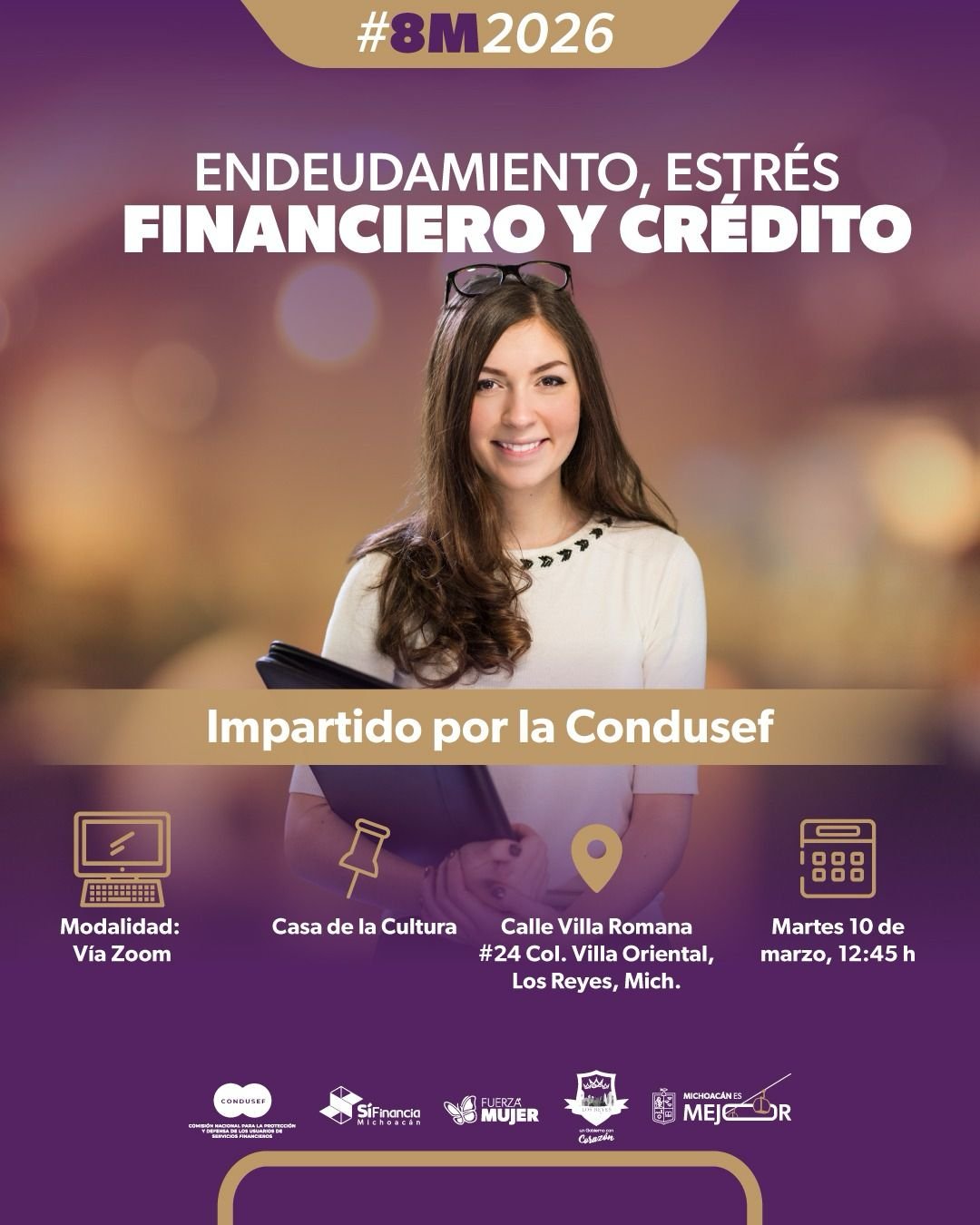El 12 de marzo en Irimbo, el Sí Financia firmará un acuerdo de colaboración con el Ayuntamiento y se impartirá la charla “Emprende con éxito”, orientada a fortalecer proyectos productivos locales. De forma simultánea, en Uruapan se realizará la conferencia “Buró de crédito, afores, seguros, crédito, endeudamiento y estrés financiero”, impartida por personal de la Condusef. La jornada de profesionalización cerrará el 13 de marzo en Morelia con la charla “Flujo de efectivo para negocios Pyme y finanzas personales”, organizada en coordinación con Canirac Morelia.
