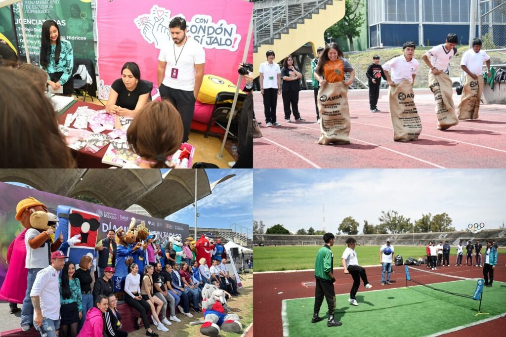 La jornada se realizó bajo el lema “Desenmascarar el atractivo: Exponiendo las tácticas de la industria de los productos de tabaco y nicotina”, y reunió a 100 estudiantes del Conalep II Y CETIS 120. Los jóvenes participaron activamente en diversas actividades como carrera de relevos, futbol, tenis, carrera de carretillas, jenga gigante y carrera de costales, todas diseñadas para promover la actividad física y el compañerismo.