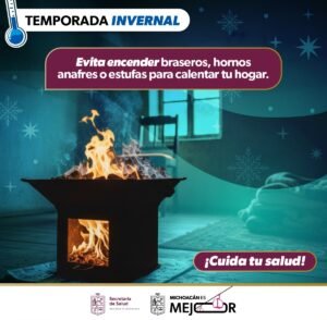 Morelia, Michoacán, 7 de noviembre de 2025.- Con la llegada de la temporada de frío, la Secretaría de Salud de Michoacán (SSM) exhorta a la población a no encender anafres, braseros, fogones o estufas dentro de casa, a fin de prevenir intoxicaciones y fallecimientos por monóxido de carbono.