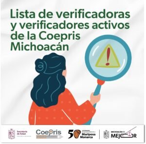 Morelia, Michoacán, 7 de mayo del 2025.- La Comisión Estatal para la Protección contra Riesgos Sanitarios de Michoacán (Coepris) informa a la ciudadanía que ya está disponible el listado oficial de verificadoras y verificadores activos que forman parte del equipo autorizado para realizar visitas sanitarias en el estado.