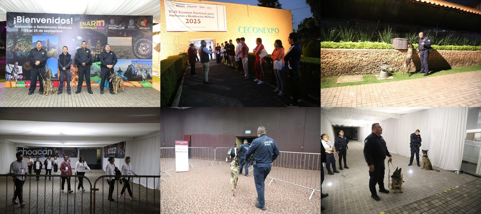 Morelia, Michoacán, 23 de septiembre de 2025.- La Secretaría de Seguridad Pública (SSP) desplegó un operativo preventivo y de vigilancia en el marco del Examen Nacional de Aspirantes a Residencias Médicas (ENARM), que se lleva a cabo a partir de este martes 23 al 25 de septiembre en el Centro de Convenciones y Exposiciones (Ceconexpo), de la ciudad de Morelia.
