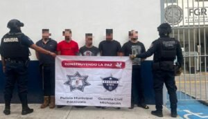 Salvador Escalante, Michoacán, 4 de agosto de 2025.- Producto de las labores de vigilancia y prevención del delito, los agentes de la Secretaría de Seguridad Pública (SSP) detuvieron a cinco hombres presuntos integrantes de un grupo delictivo, en el municipio de Salvador Escalante.