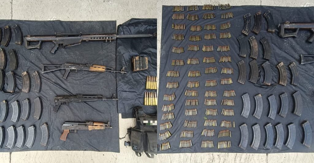 Dentro de la unidad, los agentes policiales y castrenses encontraron tres fusiles calibre 7.62X39 milímetros, el barret, con impacto antiblindaje, calibre .50, además de 576 cartuchos y 25 cargadores, así como un chaleco táctico con una leyenda alusiva a una célula delincuencial.