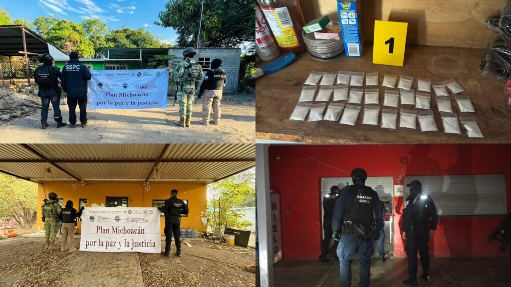 Apatzingán, Michoacán, 23 de enero del 2026.- La Secretaría de Seguridad Pública (SSP) apoyó a la Fiscalía General del Estado (FGE) en la cumplimentación de 19 órdenes de cateo en la localidad de Cenobio Moreno, en inmuebles presuntamente vinculados a César Alejandro “N”, alias “El Botox”.