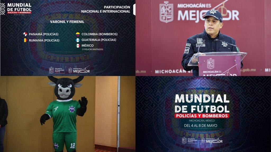 Morelia, Michoacán, 30 de abril de 2026.- El secretario de Seguridad Pública (SSP), José Antonio Cruz Medina invitó al arranque del Mundial de Fútbol Policías y Bomberos, mismo que se inaugurará el próximo domingo 3 de mayo a las 18:00 horas, en el Lienzo Charro de la capital michoacana.
