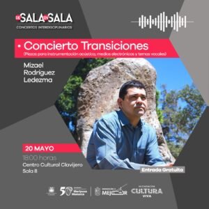 Morelia, Michoacán, 20 de mayo de 2025.- El próximo martes 20 de mayo a las 18:00 horas, la Sala 8 del Centro Cultural Clavijero será escenario del concierto “Transiciones”, una experiencia sonora que combina el piano con medios electrónicos, bajo la autoría e interpretación del compositor y artista sonoro Mizael Rodríguez Ledezma. La entrada será libre.