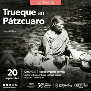 Pátzcuaro, Michoacán, 20 de septiembre de 2025.- La Secretaría de Cultura de Michoacán (Secum) invita a sumarse a la actividad del trueque en Pátzcuaro, un encuentro comunitario que preserva la tradición prehispánica de intercambiar productos y saberes sin usar dinero. Se realizará este sábado 20 de septiembre a partir de las 10:00 horas en el Centro Cultural Antiguo Colegio Jesuita de Pátzcuaro.