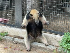 Respecto a la tamandúa mexicana, señaló que es un ejemplar que fue rescatado por elementos de Protección Civil de Lázaro Cárdenas y entregado a la Profepa. Se recibió el pasado 6 de junio, con signos de desnutrición, deshidratado, con garrapatas y con golpes en todo su cuerpo. Precisó que, a unos días, la diferencia ya se nota, se puede mover y poner de pie, aunque aún no se alimenta por sí sola.